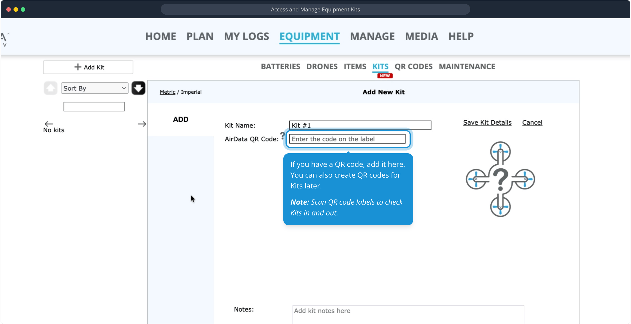 If you have a QR code, add it here. You can also create QR codes for Kits later.