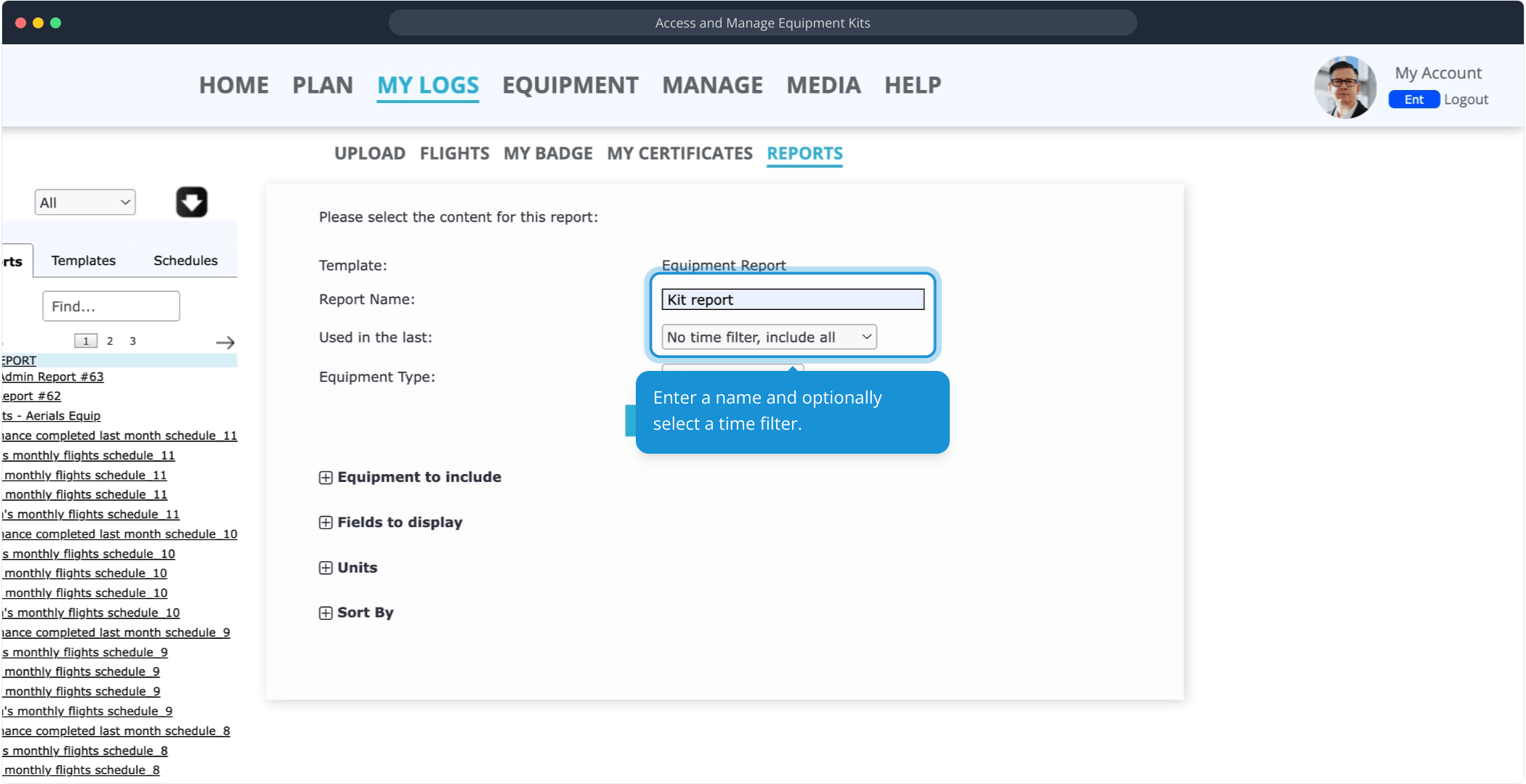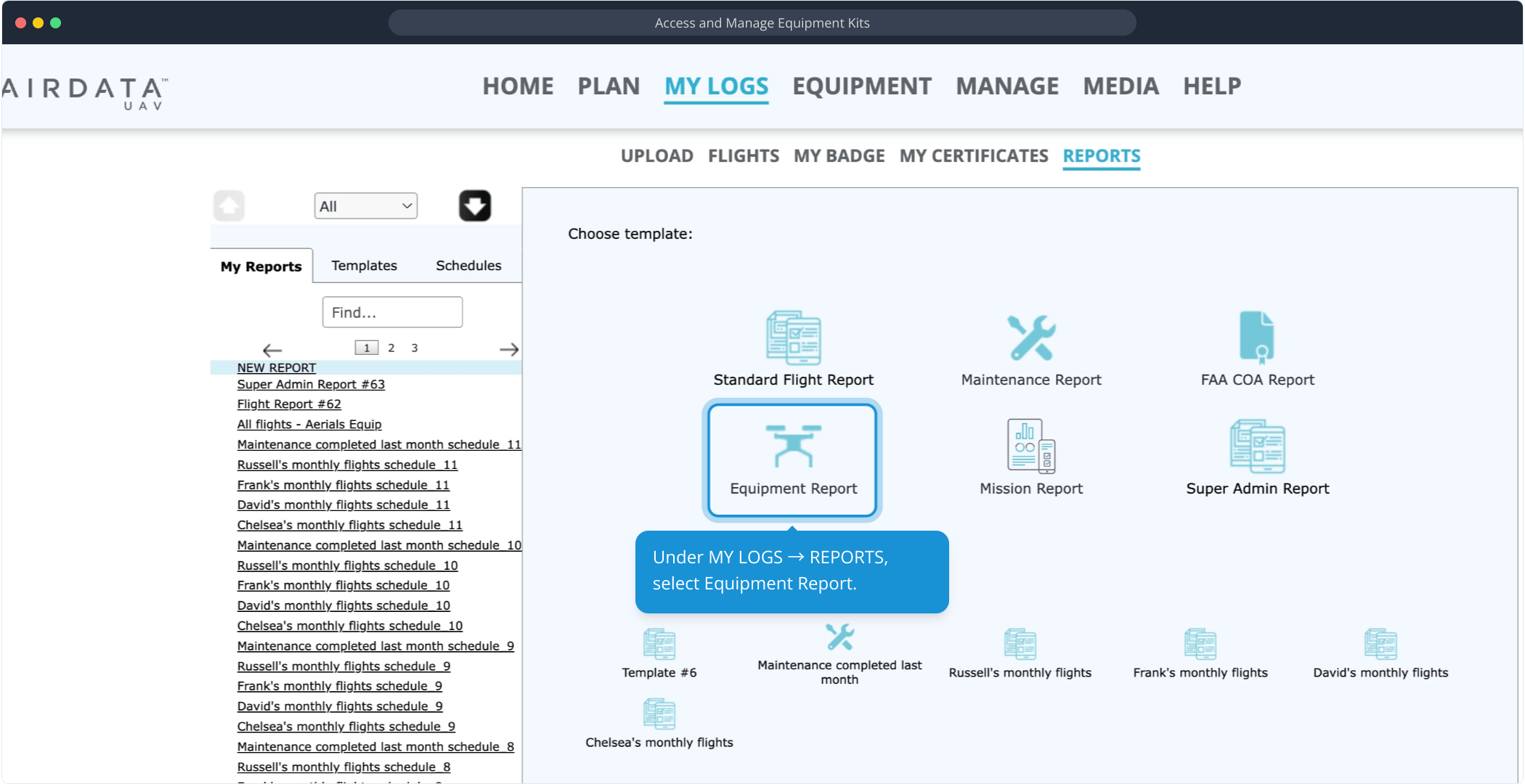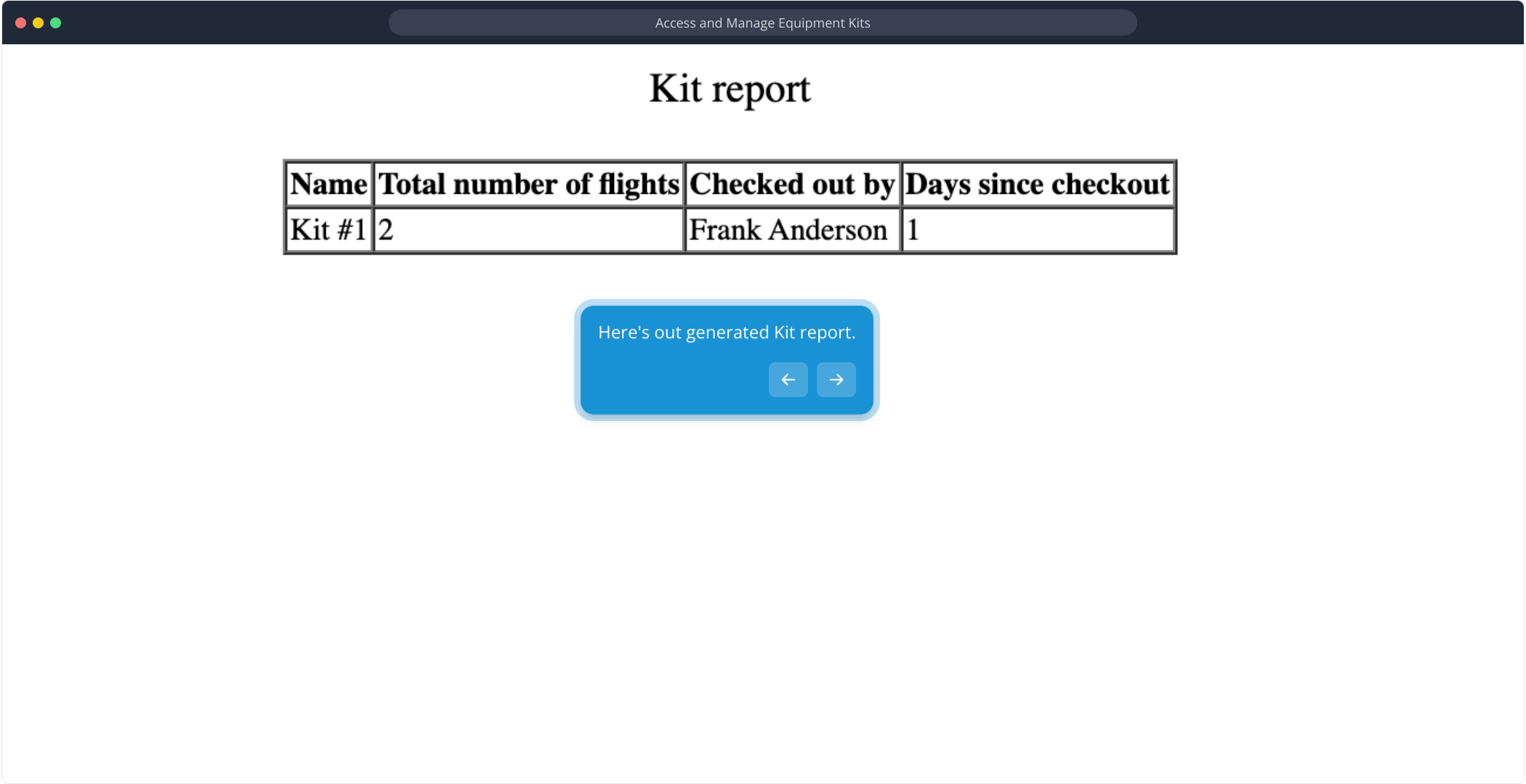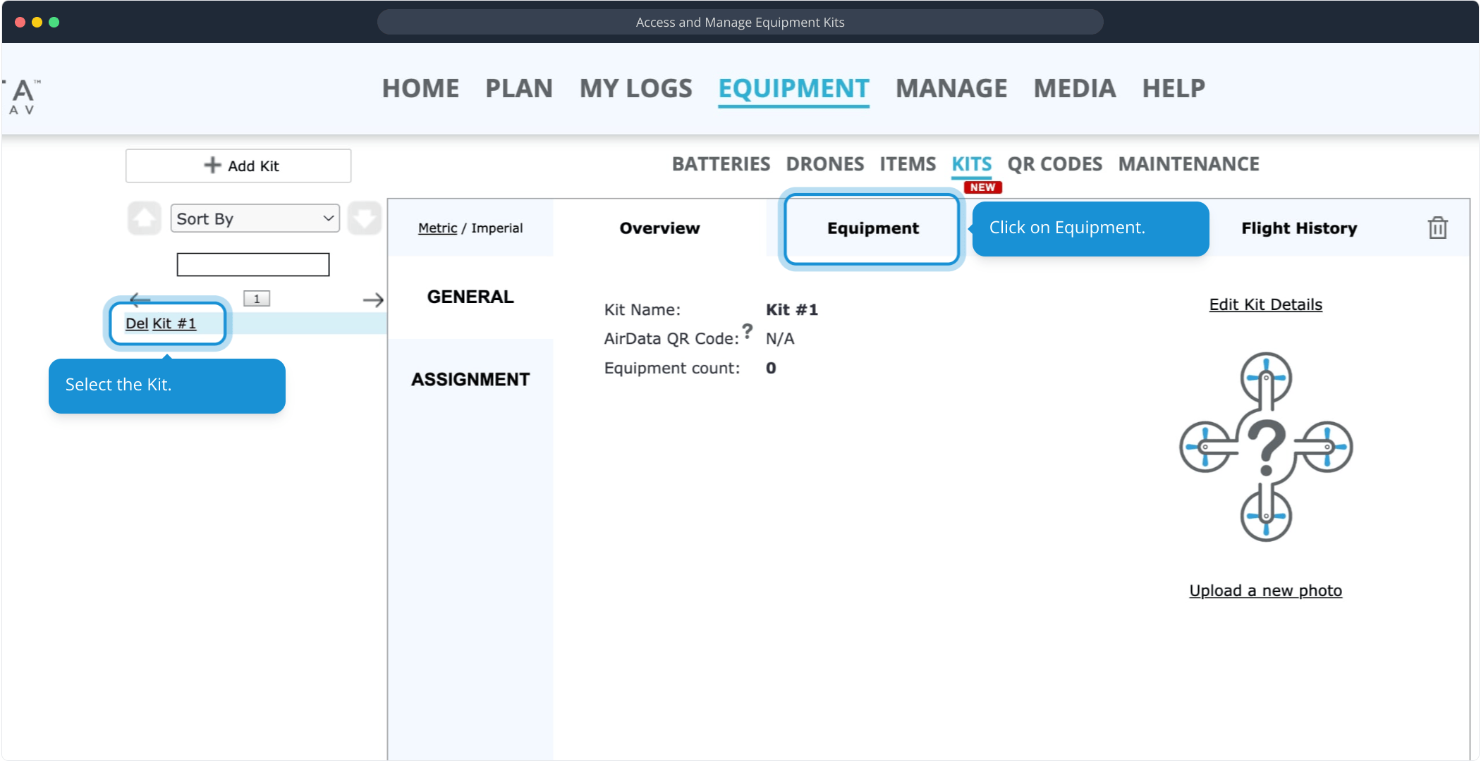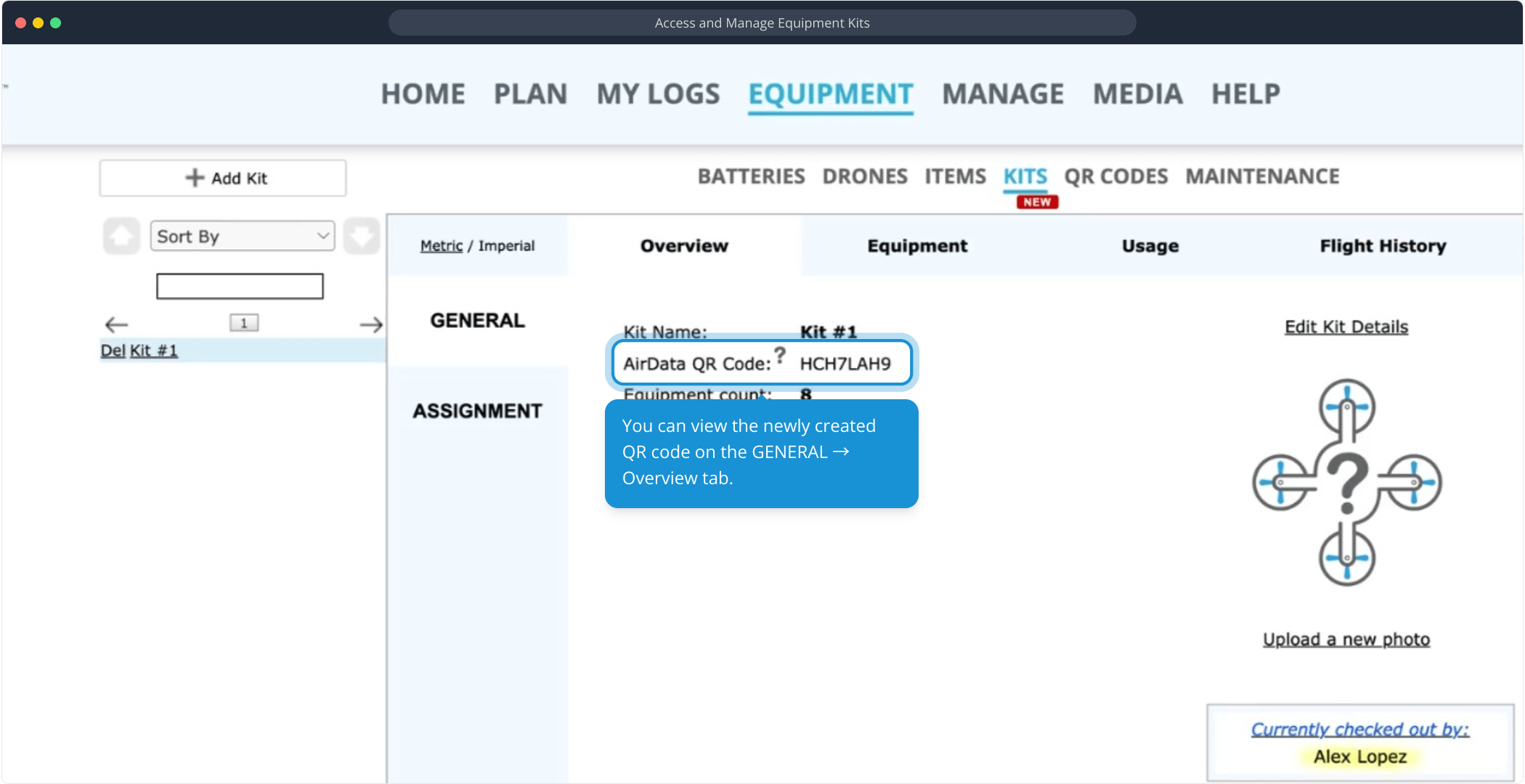 Similarly, if any equipment from the Kit is used for a flight, the flights will appear under Flight History.
