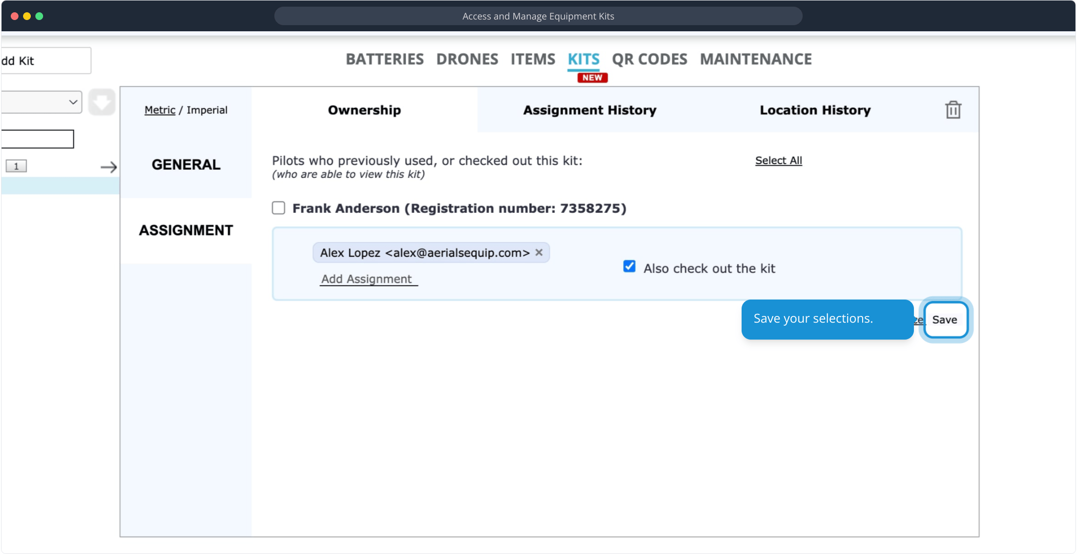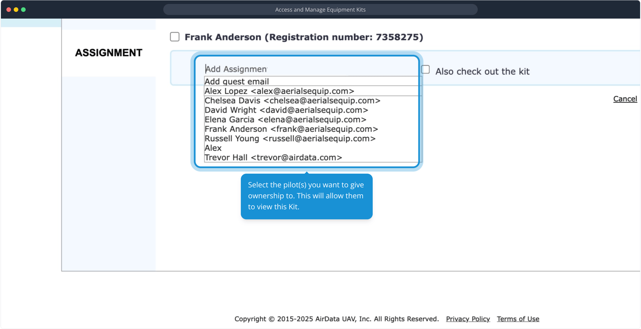 Select the pilot(s) you want to give ownership to. This will allow them to view this Kit.