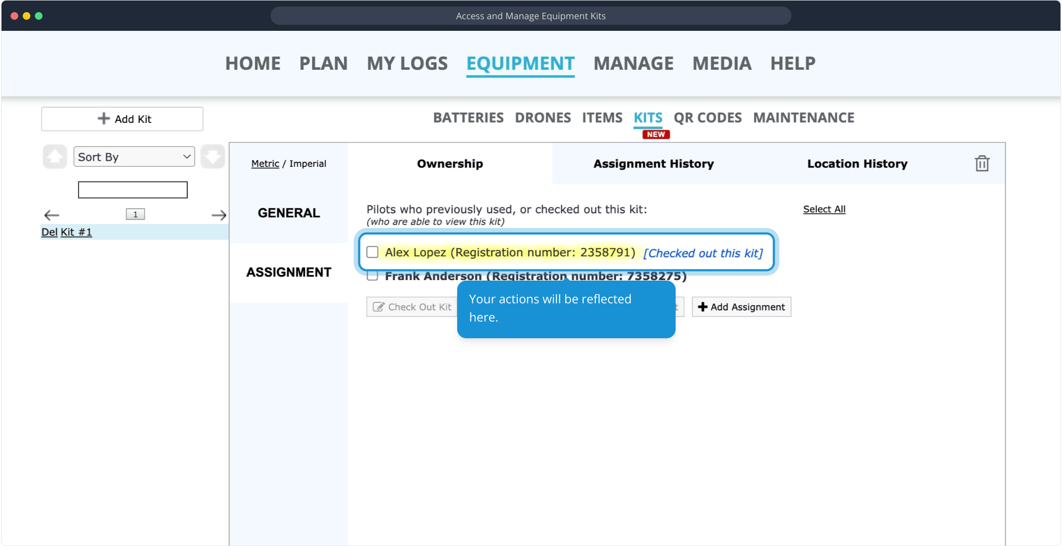 Pilots need the "Edit" permission to check in or check out a Kit. To learn how to check in or check out Kits for your pilots, continue reading.