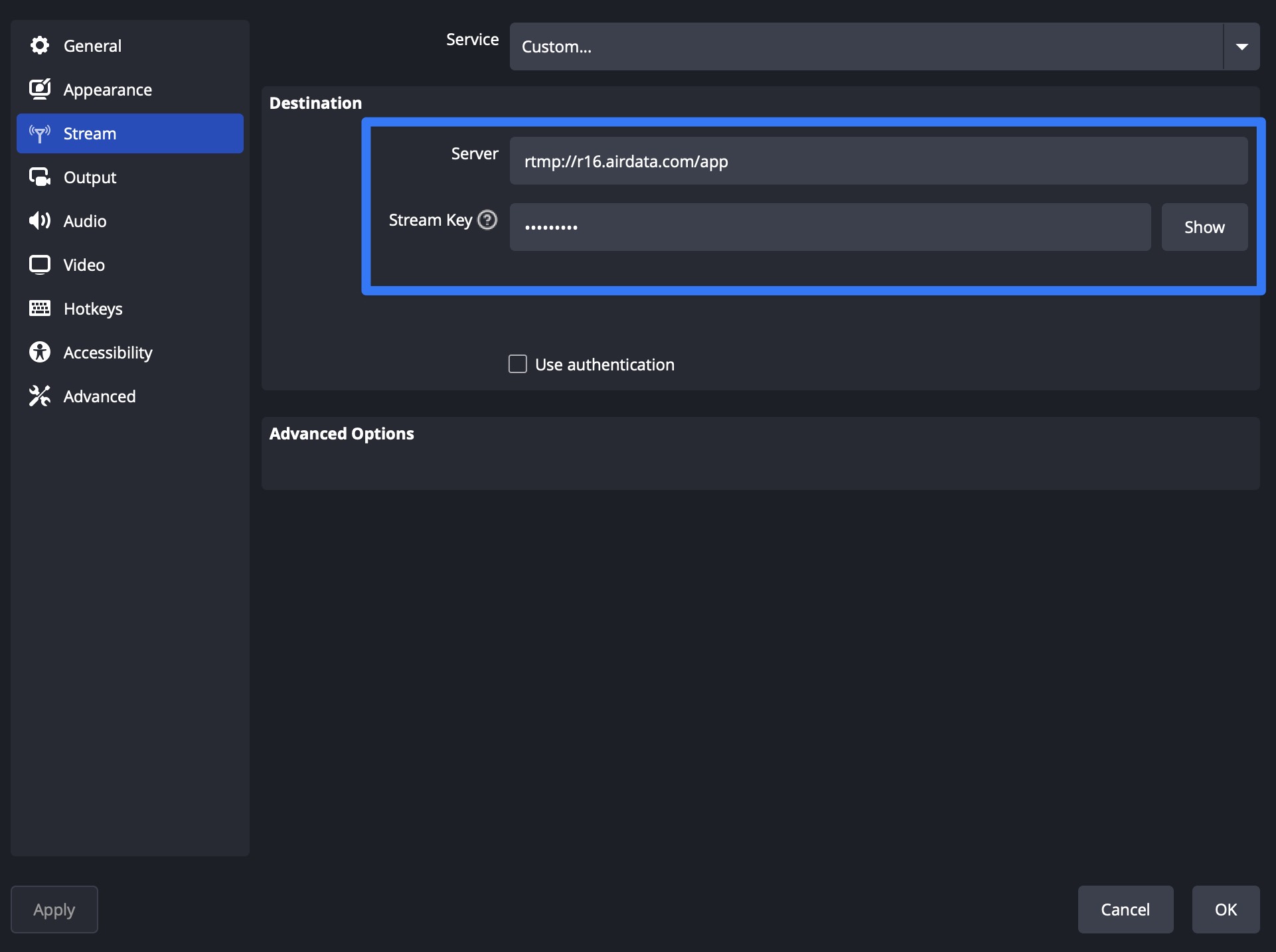 Your AirData RTMP URL