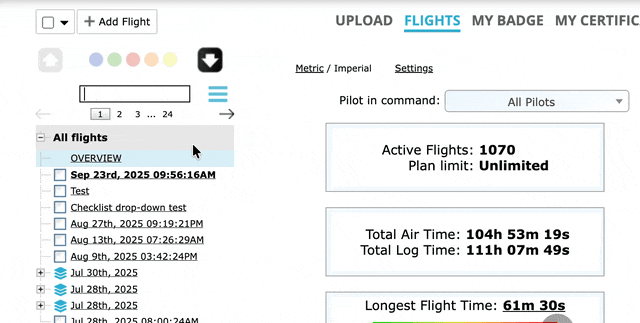 These upgrades specifically improve the MY LOGS → FLIGHTS and MANAGE → PILOTS pages. With the new system: